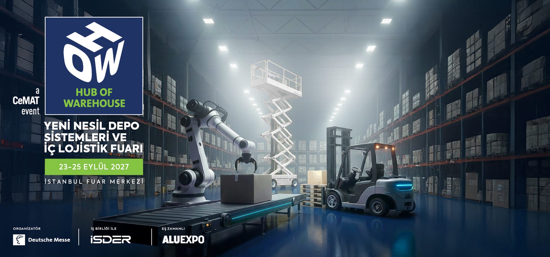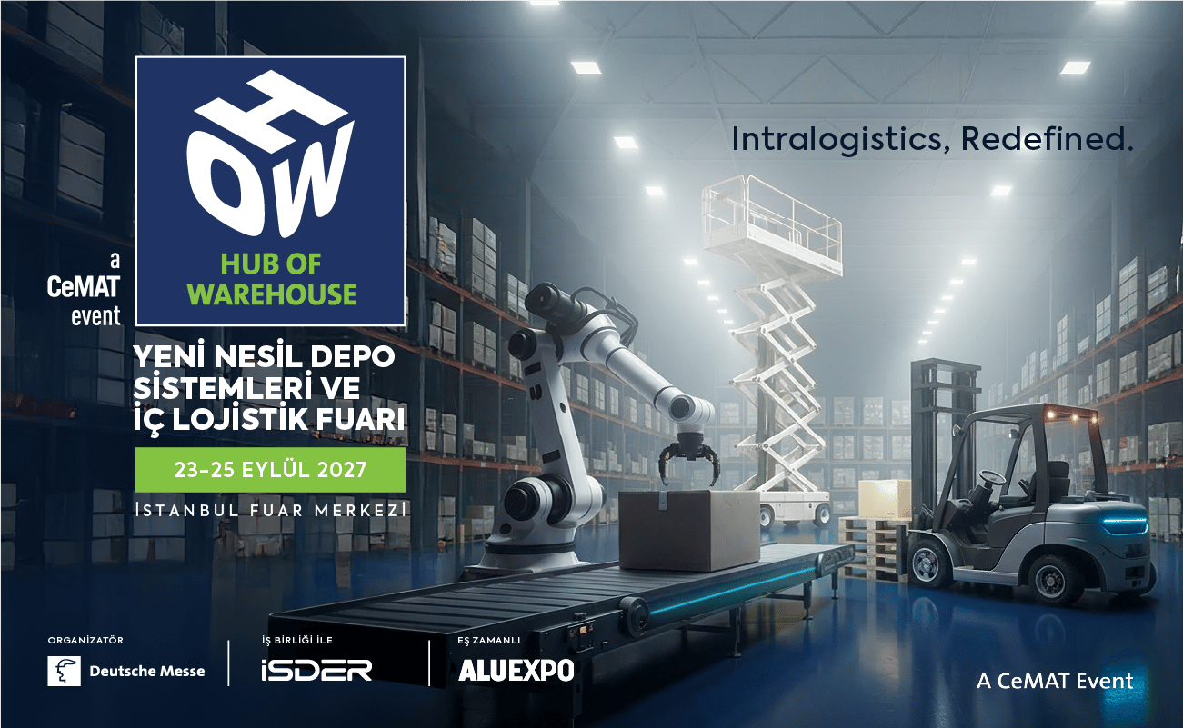 Yeni Nesil Depo Sistemleri ve İç Lojistik Fuarı HOW–Hub of Warehouse, 23–25 Eylül 2027 tarihlerinde İstanbul Fuar Merkezi’nde ikinci kez sektör profesyonellerini ağırlamaya hazırlanıyor. Hannover Fairs Turkey Fuarcılık tarafından organize edilen fuar; tedarik zinciri yönetimi, iç lojistik, yazılım ve otomatik depolama teknolojileri alanlarında faaliyet gösteren firmaları aynı platformda buluşturmayı hedefliyor. HOW–Hub of Warehouse 2027 kapsamında; malzeme taşıma teknolojileri, depolama ve raf sistemleri, depolar ve operasyonlara yönelik paketleme teknolojileri, depo çözümleri, yazılım ve otomasyon uygulamaları, robot teknolojileri ile AGV ve AMR çözümleri geniş bir ürün ve teknoloji yelpazesiyle sergilenecek. Fuar aynı zamanda, Deutsche Messe’nin lojistik, taşıma teknolojileri ve tedarik zinciri alanlarında dünyanın önde gelen fuar markalarından biri olan CeMAT portföyü içerisinde konumlanıyor. Bu güçlü uluslararası bağlantı, etkinliğin sektörel görünürlüğünü ve küresel etkileşimini artıran önemli bir unsur olarak öne çıkıyor. Öte yandan organizasyon, İstif Makinaları Distribütörleri ve İmalatçıları Derneği (İSDER) iş birliğiyle gerçekleştirilecek. Yenilenen bu iş birliği kapsamında istifleme ve depo ekipmanları alanındaki üretici ve distribütörlerin fuara güçlü bir katılım göstermesi planlanırken, sektörün ihtiyaçlarına yönelik içerik ve etkinlik programlarının da İSDER ile birlikte şekillendirilmesi hedefleniyor.
