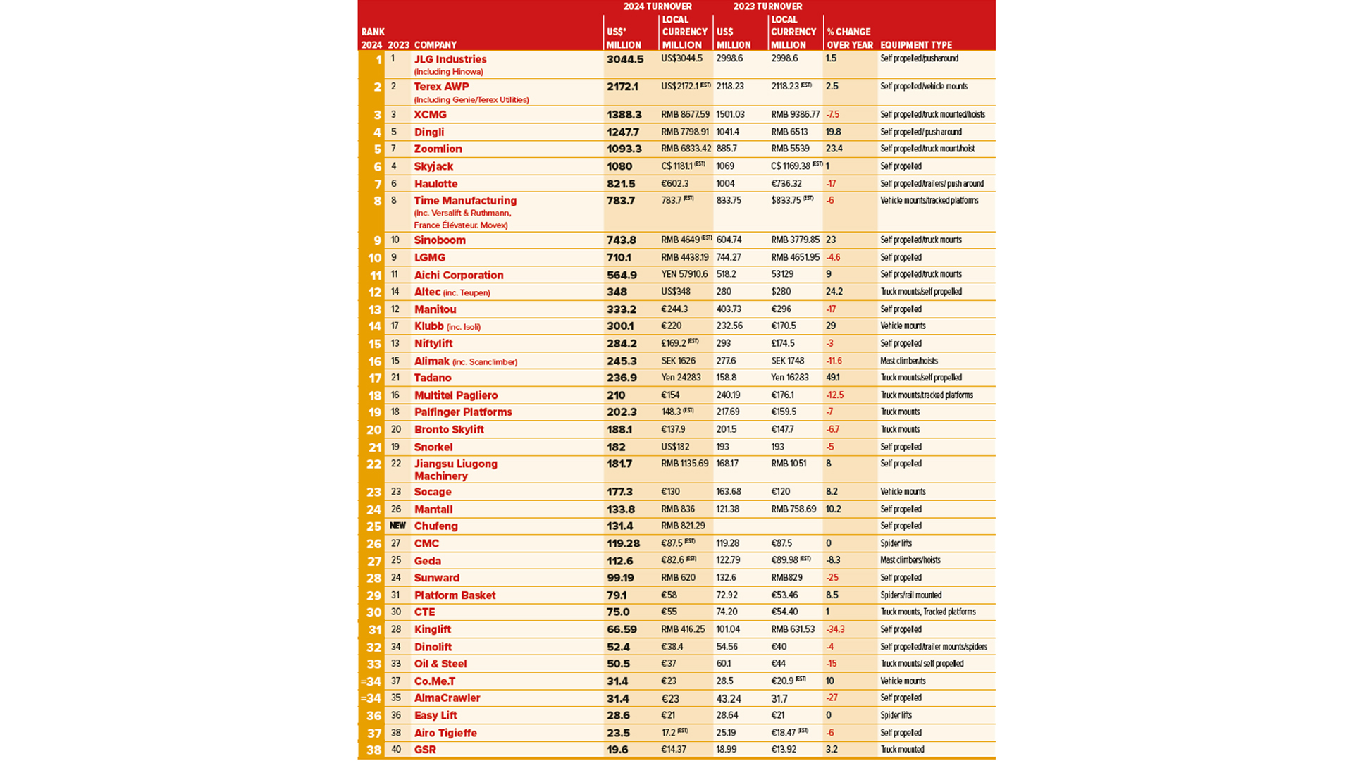 Dünyanın en büyük erişim ekipmanı üreticilerinin yıllık gelirlerine göre sıralandığı accessM20 listesi, 2024 yılına dair sektördeki zorlukları ve öne çıkan gelişmeleri gözler önüne serdi.